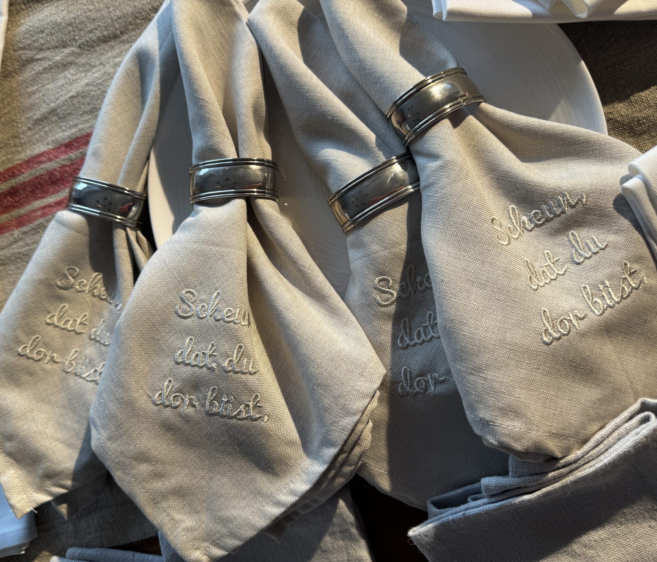 Leinenservietten „Scheun dat du dor büst!“ 22,50 € zzgl. Versandkosten Leinenservietten "Scheun dat du dor büst!" Menge In den Warenkorb Kategorie: Servietten Beschreibung BeschreibungLeinen sandfarbenwaschbar bei 60 Gradca. 50/50 cmGarn und Wort frei wählbarÄhnliche Produkte Leinen serviette weiss 21,50 €zzgl. VersandkostenOptionen Serviette weiss Damast 16,90 €zzgl. VersandkostenOptionen Serviette weiss Damast “ Scheun dat du dor büst „ 16,90 €zzgl. VersandkostenOptionen Serviette weiss Damast „Lot di dat smecken“ 16,90 €zzgl. VersandkostenOptionen