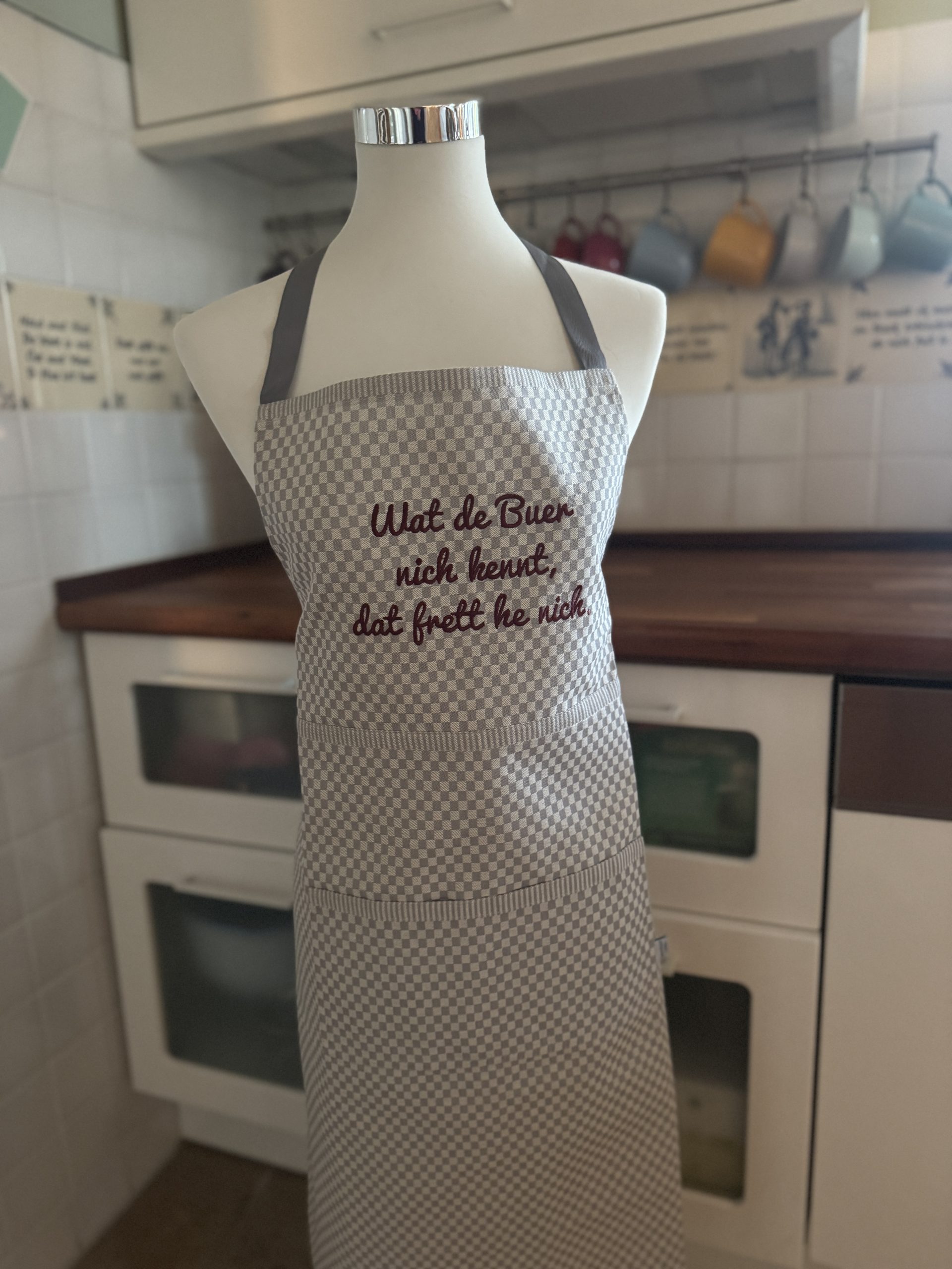 Schürze KARIERT „machma budder beidiefische“ 42,00 € zzgl. Versandkosten Schürze KARIERT "machma budder beidiefische" Menge In den Warenkorb Kategorie: Schürzen Beschreibung BeschreibungSchürze hellgrau-kariertMaterial: 100 % feste Baumwolle, waschbar bei 60 GradGarnfarbe: leuchtend blauLänge: ca 80 cmvorne mit zwei Taschen Ähnliche Produkte 1/2 Schürze , grau kariert 29,50 €zzgl. VersandkostenOptionen 1/2 Schürze , kariert 29,50 €zzgl. VersandkostenOptionen