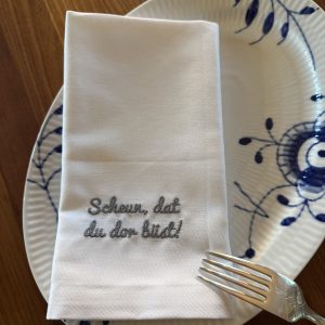 Serviette weiss Damast „Lot di dat smecken“ 16,90 € zzgl. Versandkosten Serviette weiss Damast "Lot di dat smecken" Menge In den Warenkorb Kategorie: Servietten Beschreibung BeschreibungDamast weisswaschbar bei 60 Gradca. 45/45 cmGarn und Wort frei wählbarÄhnliche Produkte Leinen serviette weiss 21,50 €zzgl. VersandkostenOptionen Serviette weiss Damast 16,90 €zzgl. VersandkostenOptionen Serviette weiss Damast “ Scheun dat du dor büst „ 16,90 €zzgl. VersandkostenOptionen Leinen serviette in lichtgrau 21,50 €zzgl. VersandkostenOptionen