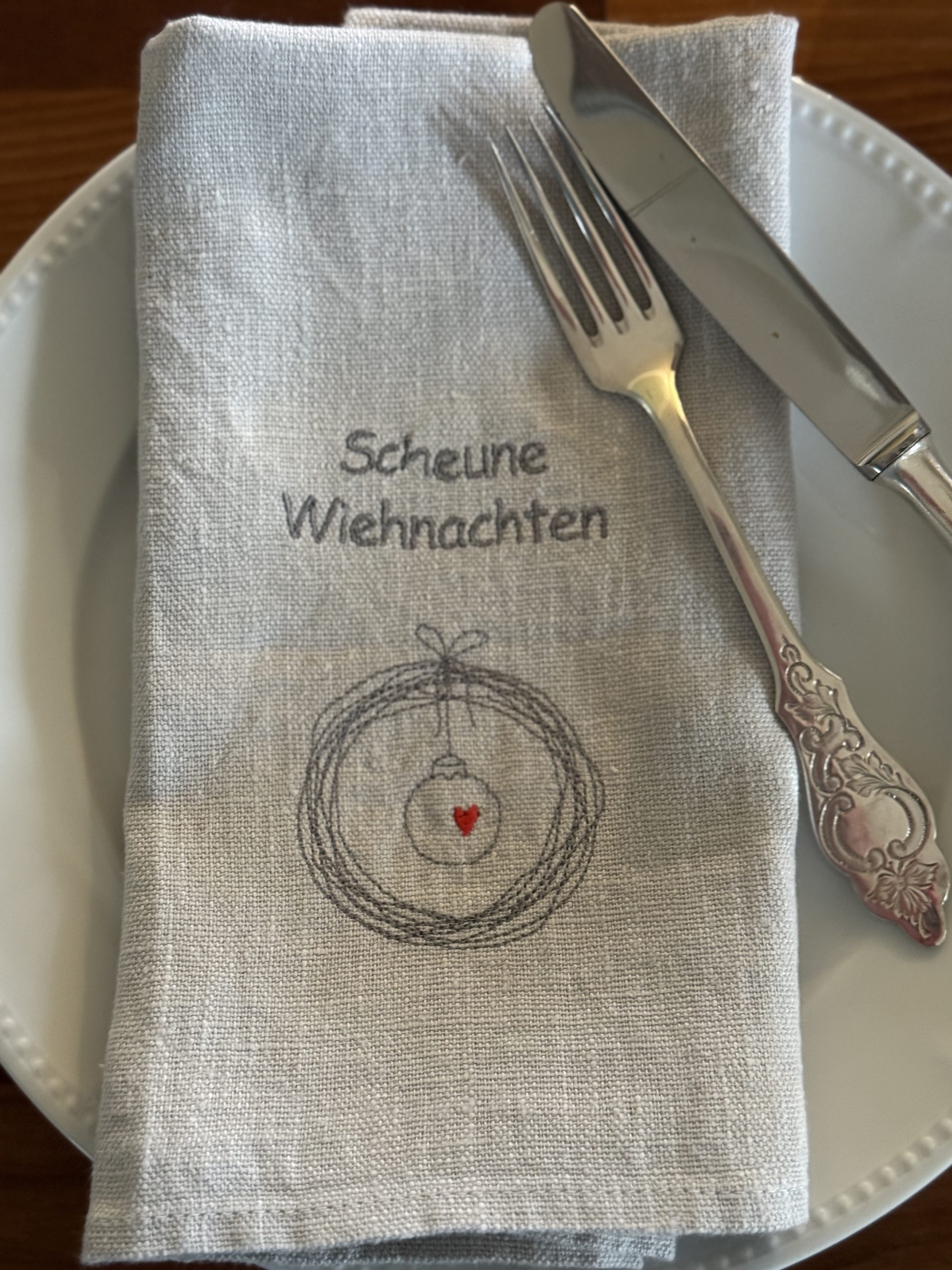 Serviette Weihnachten aus Leinen mit Kranz 21,50 € zzgl. Versandkosten Serviette Weihnachten aus Leinen mit Kranz Menge In den Warenkorb Kategorie: Weihnachtsserviette Beschreibung BeschreibungLeinen grauwaschbar bei 60 Gradca. 45/45 cmGarn und Wort frei wählbarÄhnliche Produkte Serviette Weihnachten mit Mistelzweig 16,90 €zzgl. VersandkostenOptionen Serviette Weihnachten mit Hirschen 16,90 €zzgl. VersandkostenOptionen Serviette Weihnachten mit Kranz 16,90 €zzgl. VersandkostenOptionen Serviette Weihnachten mit Auto und Tannenbaum 16,90 €zzgl. VersandkostenOptionen