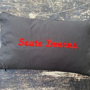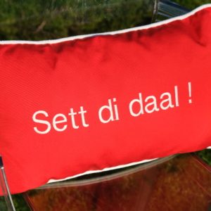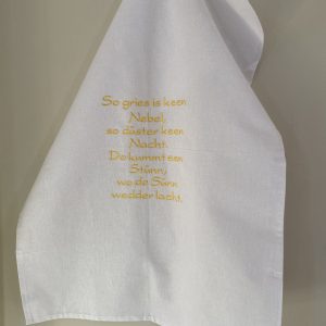 Serviette weiss Damast “ Scheun dat du dor büst „
